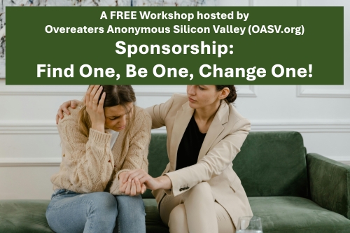 If you are new to OA, or returning after a relapse, and you want to get started in the OA Twelve Steps of recovery, then please send an email to our Temporary Sponsor Coordinator at getsponsor@oasv.org. Our OASV Temporary Sponsor Coordinator will respond to you with someone who can serve as your temporary sponsor. In some cases, a temporary sponsor, if willing and available, can become your regular food and/or step sponsor.